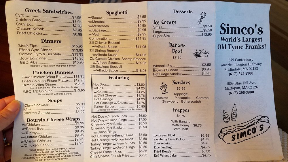 Simco's is a popular hot dog spot located in Mattapan, MA, offering a variety of mouth-watering options. From classic hot dogs with toppings like mustard, ketchup, and relish, to specialty creations like the Hot Sausage and Turkey Burger, there is something for everyone. Their menu also includes a selection of subs, steak subs, and delicious sides like Cheese French Fries and Chili Cheese French Fries. Customers rave about the great service and the nostalgic atmosphere, with some mentioning multi-generational visits. Simco's is known for its quality food, friendly staff, and a loyal following. Whether you're a local or just passing through Boston, a visit to Simco's is a must for a satisfying and delicious meal.